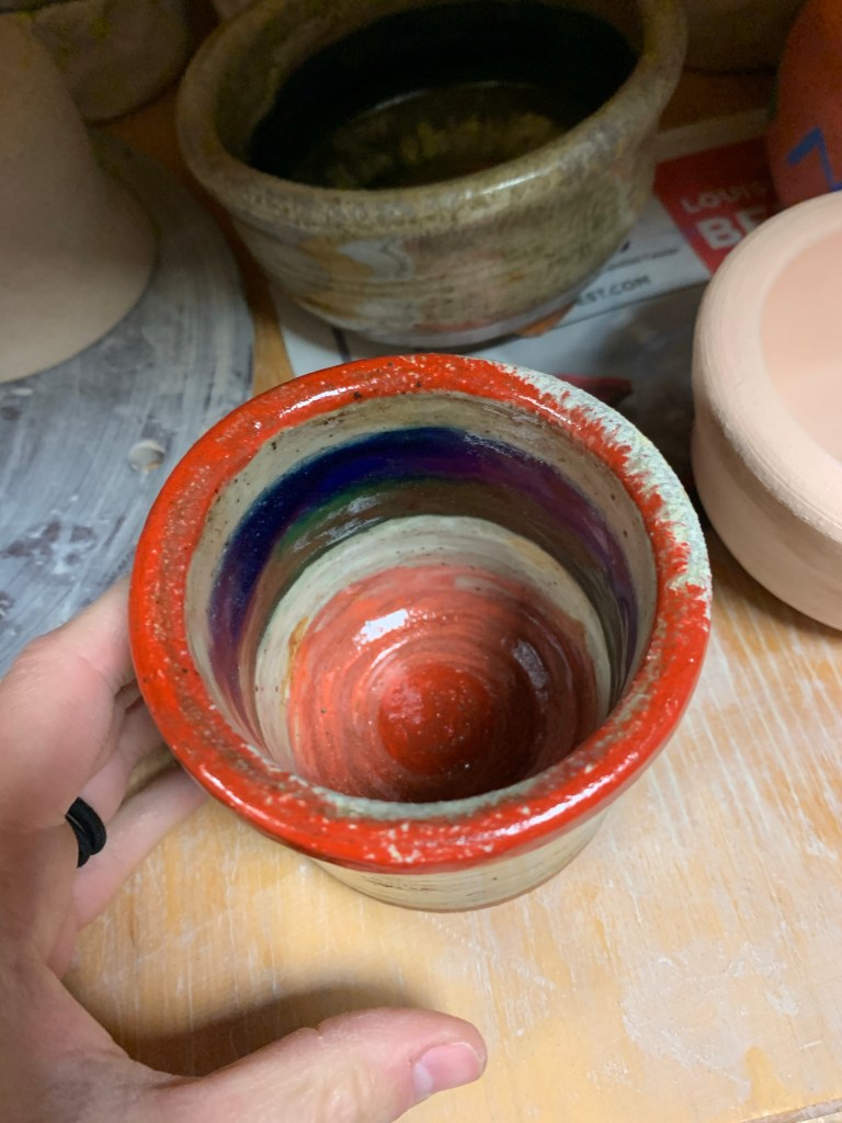 This week I helped unload the wood kiln! Yay! Everything turned out great! People made some amazing pieces and my three pieces all survived the firing. I had to sand down my bowl but it looks good now. The colors on all of my pieces changed drastically but I’m happy with them and was happy to experiment with things. I really liked how the clear glaze turned out and was glad I didn’t use a different glaze. On Wednesday we deep cleaned the wood kiln and the studio to prepare for visiting artists.